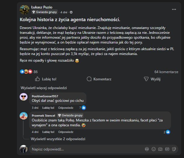 nie wiem czy to fake czy nie, ale zrobic tak, zeby tesciowa z mezem siedzacy w innym kraju kupili Tb mieszkanie i zachachmecic tak, zeby kochanek placil Tb 3,5 tysiaca z rzekomego wynajmu, mieszkajac rowniez samemu z nim w tym mieszkaniu to jest jakis mastermind, szczerze nigdy bym na takie cos nie wpadł